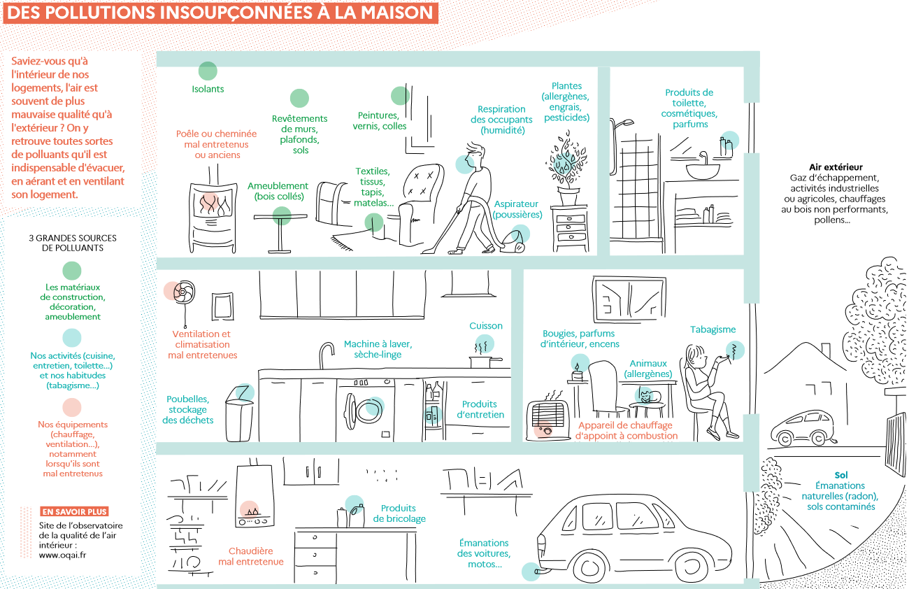 Les enjeux sanitaires et économiques liés à la qualité de l’air intérieur sont importants. En France, on estime à 19 milliards d’euros par an le coût de la mauvaise qualité de l’air intérieur. Outre les apports de l’air extérieur, les sources potentielles de pollution dans les bâtiments sont nombreuses : appareils à combustion, matériaux de construction, produits de décoration (peinture, colles, vernis…), meubles, activité humaine (tabagisme, produits d’entretien, bricolage, cuisine...), présence d'animaux domestiques... L'air intérieur, spécifiquement dans les logements, est donc pollué de manière spécifique par rapport à l'air extérieur. Il est donc important de mettre en œuvre des actions pour améliorer la qualité de l’air intérieur.